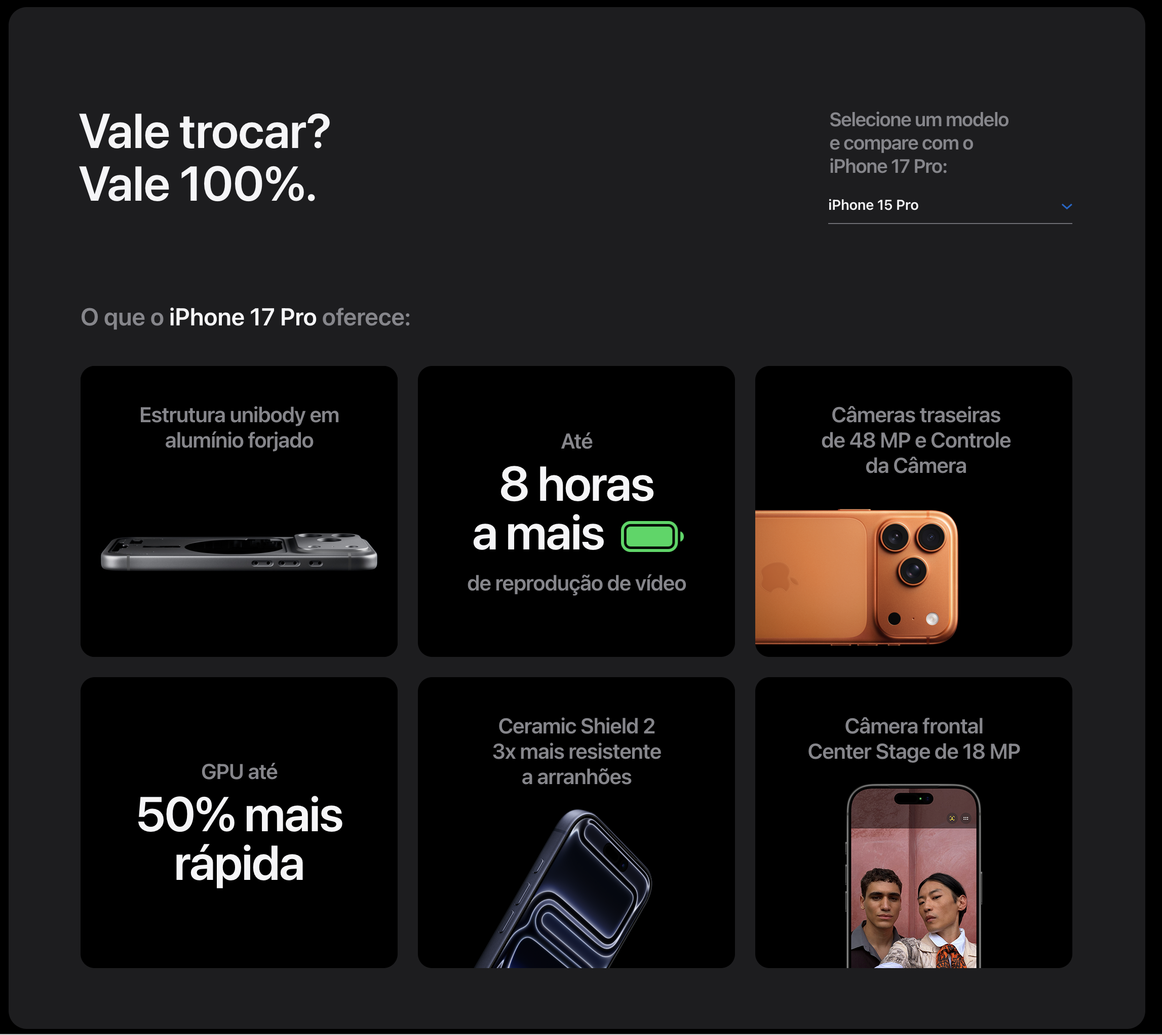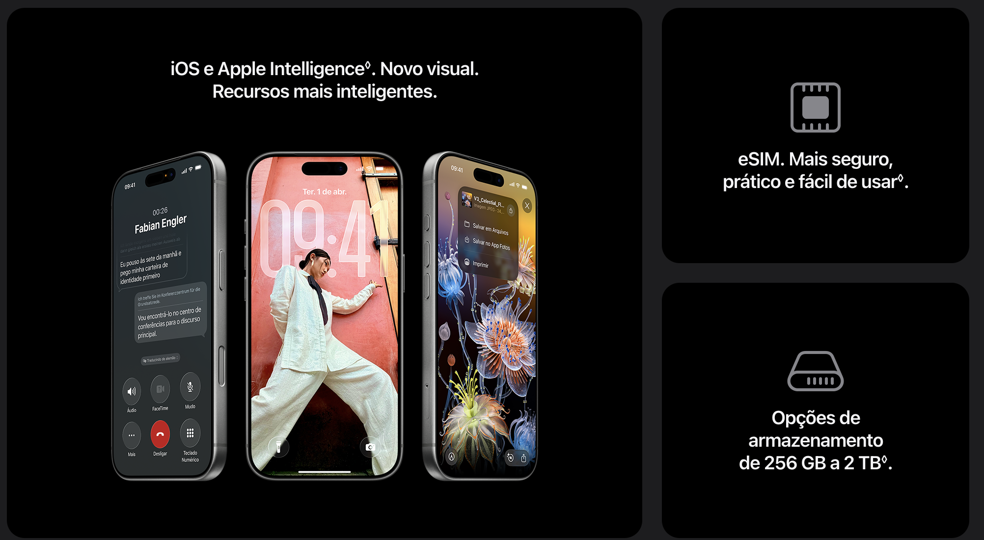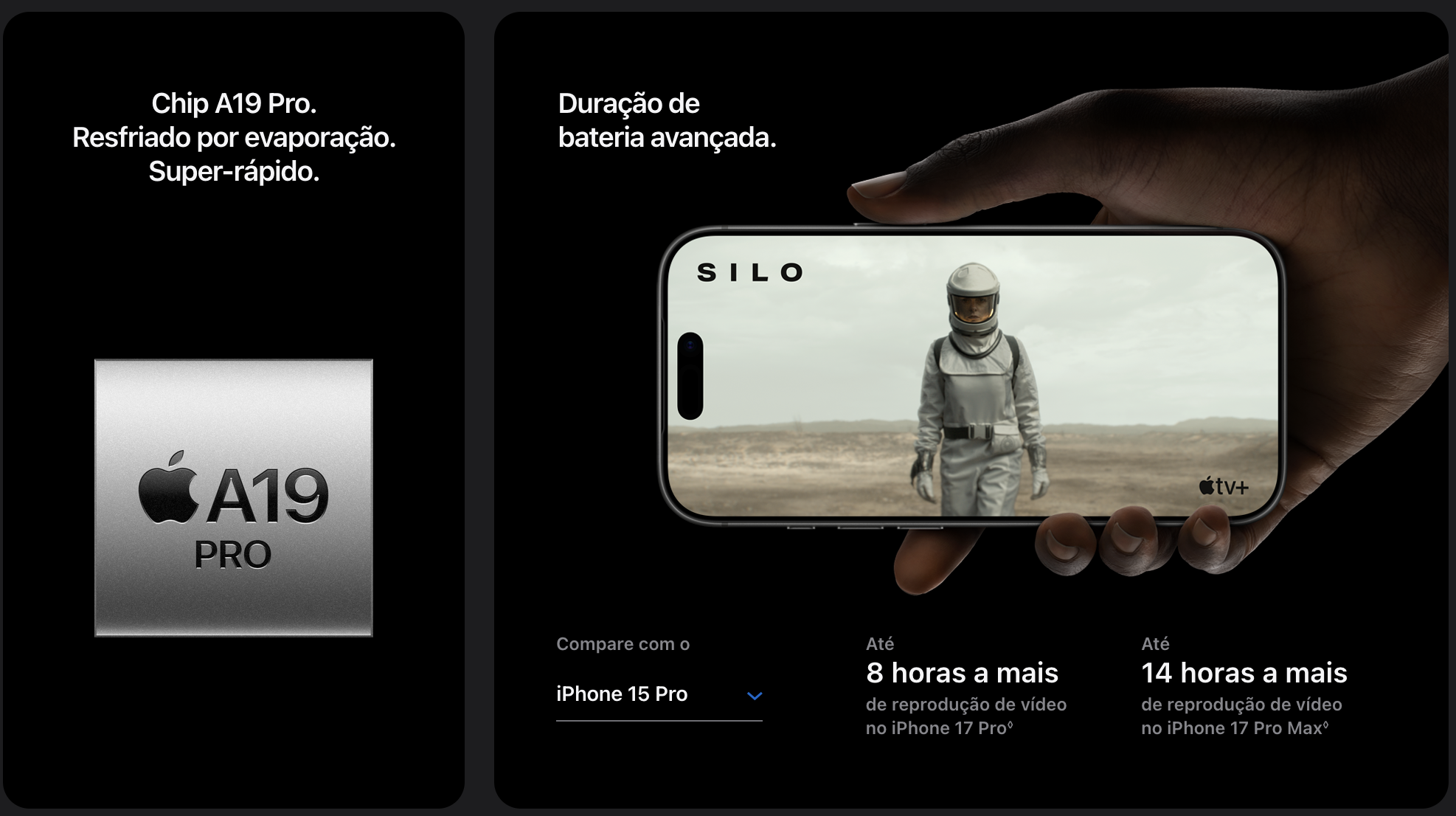 ✔ Chip A19 Pro + 12GB RAM — desempenho extremo e inteligência avançada