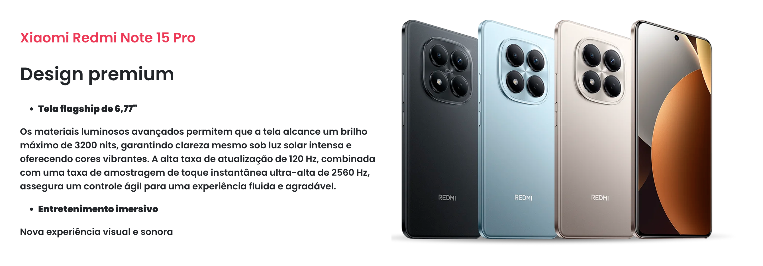 Tela AMOLED 1.5K de 120Hz: Oferece uma qualidade de imagem superior ao Full HD padrão, o que é ótimo para consumo de mídia.