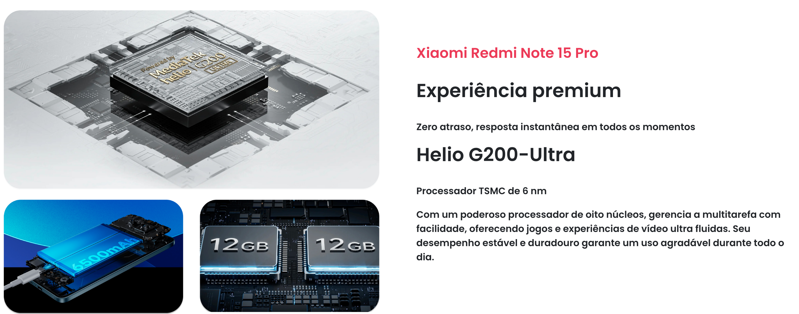 Super Bateria de 6500 mAh: Este é um dos maiores diferenciais. A maioria dos concorrentes entrega 5000 mAh. É um excelente argumento de venda para quem não quer carregar o celular todo dia.