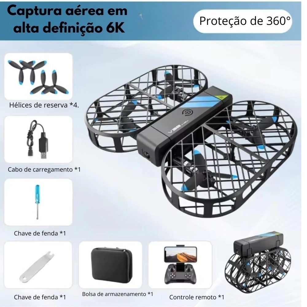 Construído com plástico ABS durável, o V38 é resistente o suficiente para suportar diversas aventuras, garantindo que sua diversão dure muito tempo. Além disso, o design elegante combina estilo e funcionalidade em um único drone.