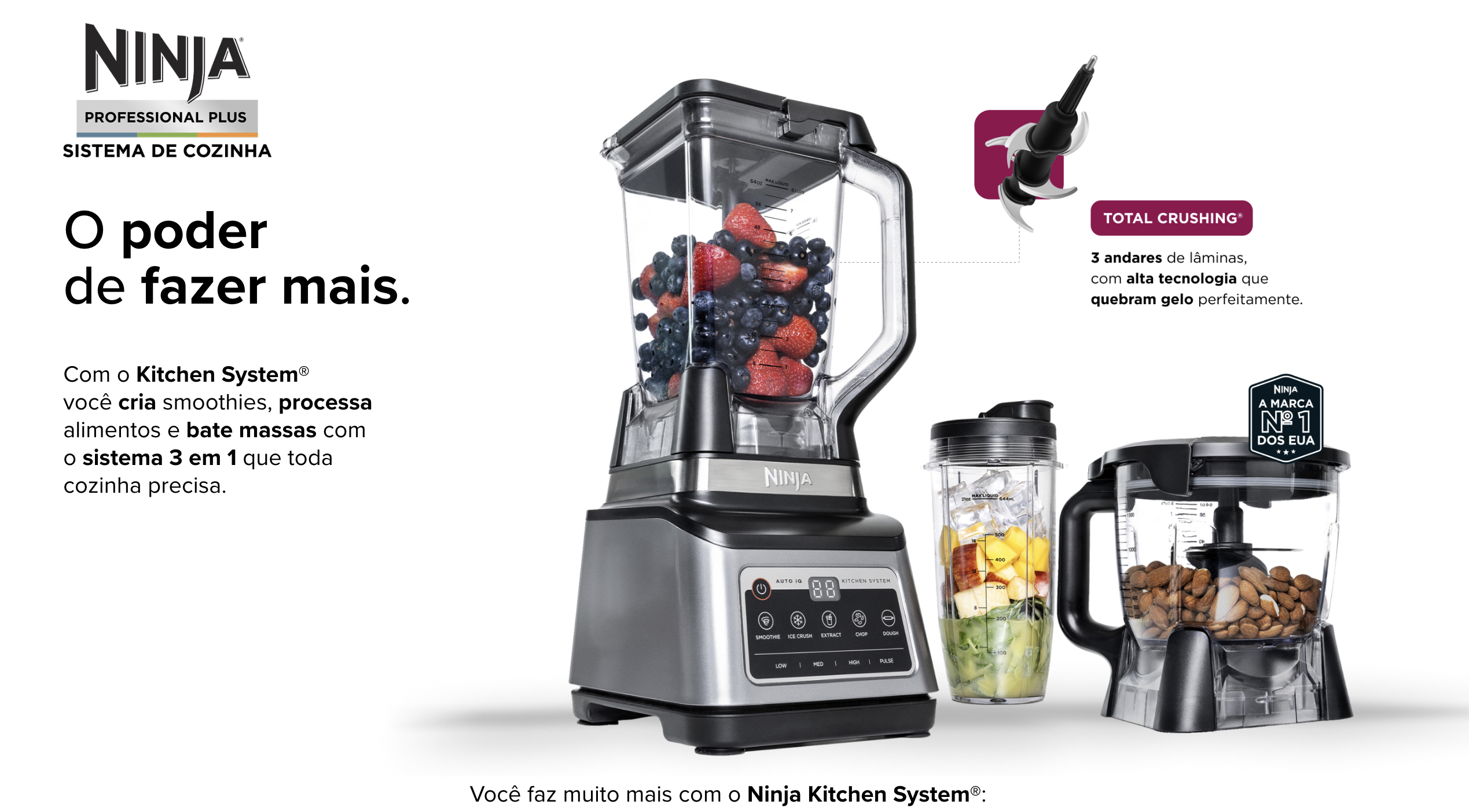 Seja para smoothies, shakes proteicos, massas leves, molhos, cremes, gelo ou extrações de nutrientes, o Ninja Mega Kitchen System BL770 entrega resultados impecáveis e consistentes. É potência de verdade para elevar sua cozinha a outro nível.