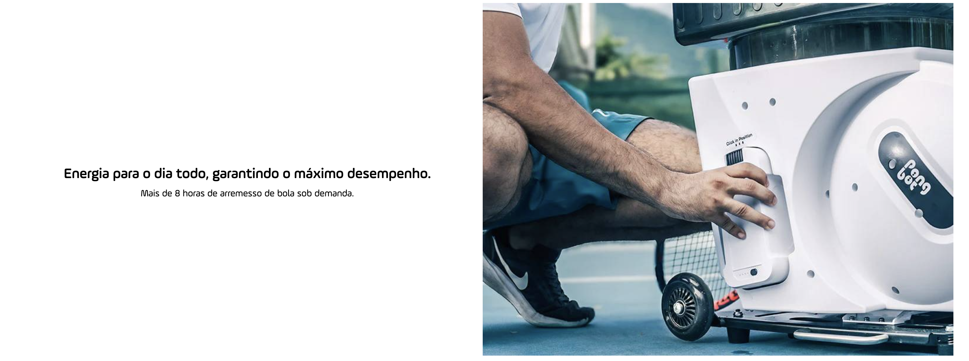 Graças ao Recovery Trigger, a Pace S Pro espera você se recuperar. Ela identifica sua posição e postura antes de disparar o próximo golpe, garantindo que seu treino de footwork seja técnico e eficiente. E com o kit incluso de 2 baterias, você tem energia de sobra para dominar a quadra por mais de 8 horas seguidas.