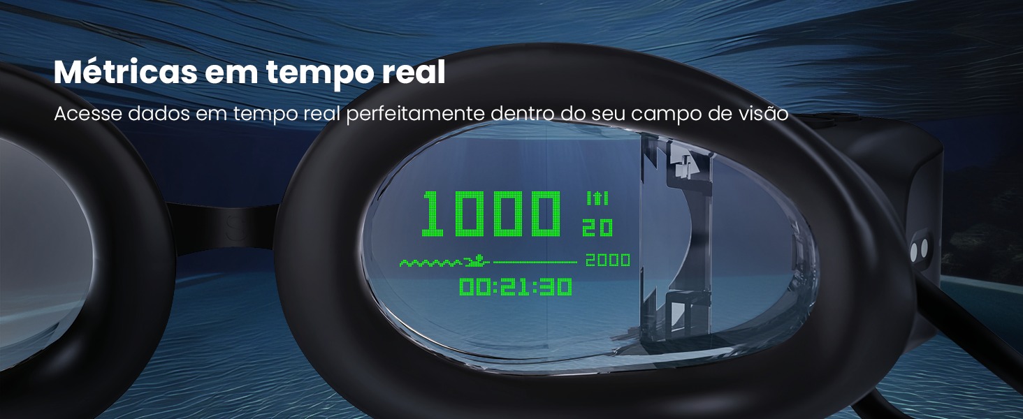 Mergulhe na nova era da natação com o Holoswim 2 Pro, os óculos inteligentes com tecnologia AR (Realidade Aumentada) e sensor AI integrado.