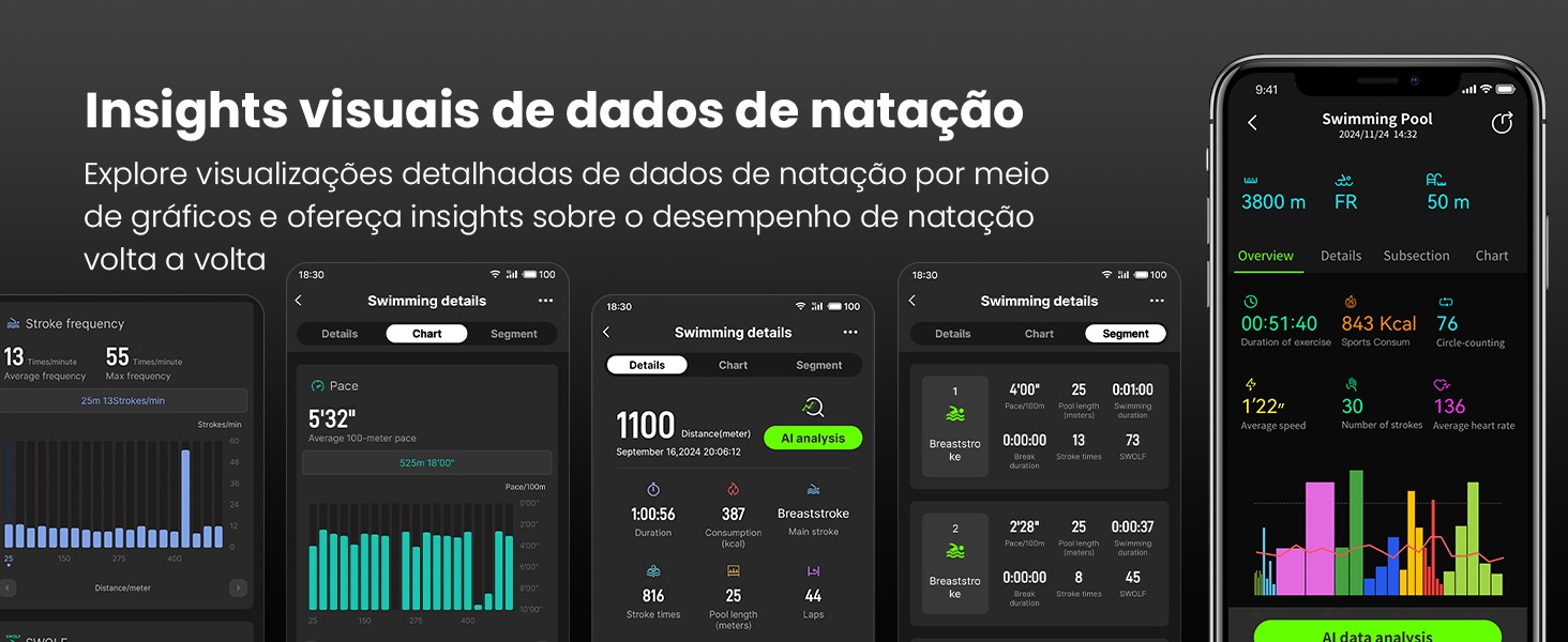 Resistência IPX8, ideal para natação profissional, academias e águas abertas