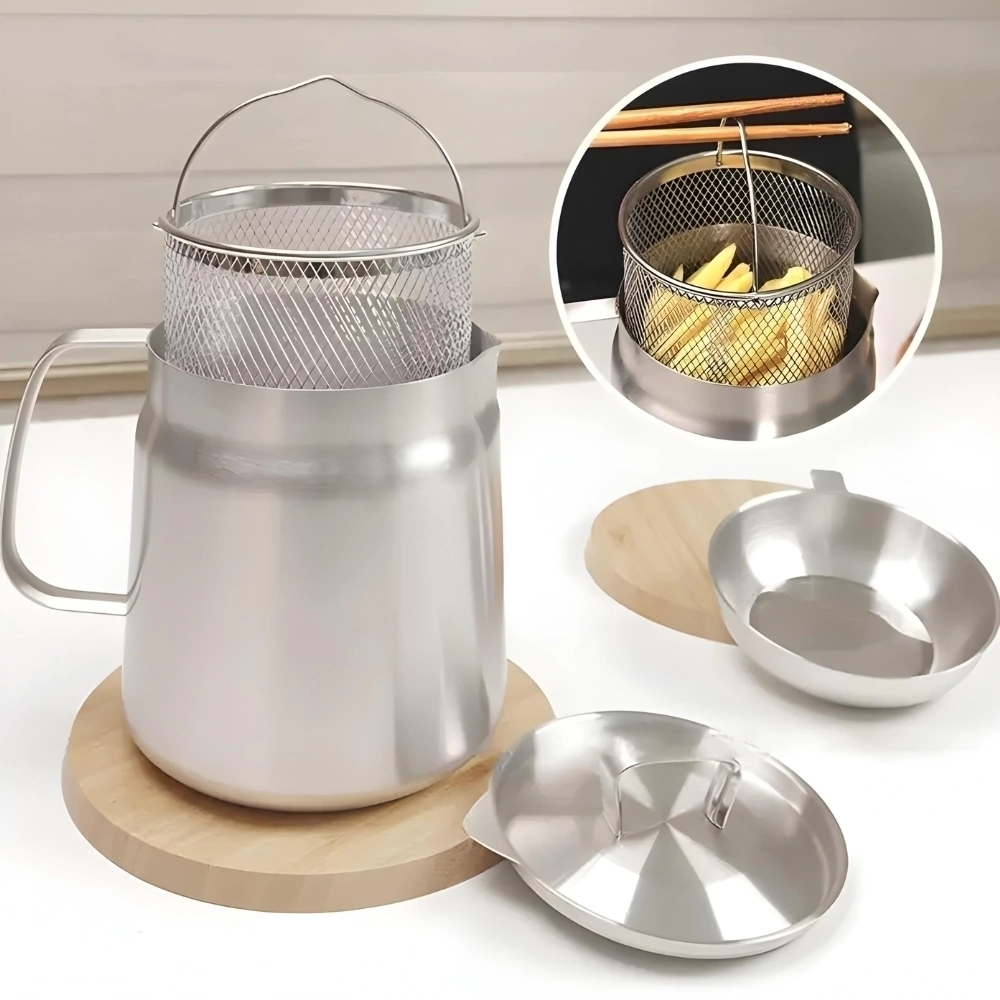 Apresentando uma solução completa para os amantes da culinária, nosso Pote de Filtro de Óleo não apenas redefine a eficiência na cozinha, mas também é um essencial eco-friendly. Ele integra três funções vitais em um design robusto e elegante, tornando-o um item indispensável para qualquer cozinha.